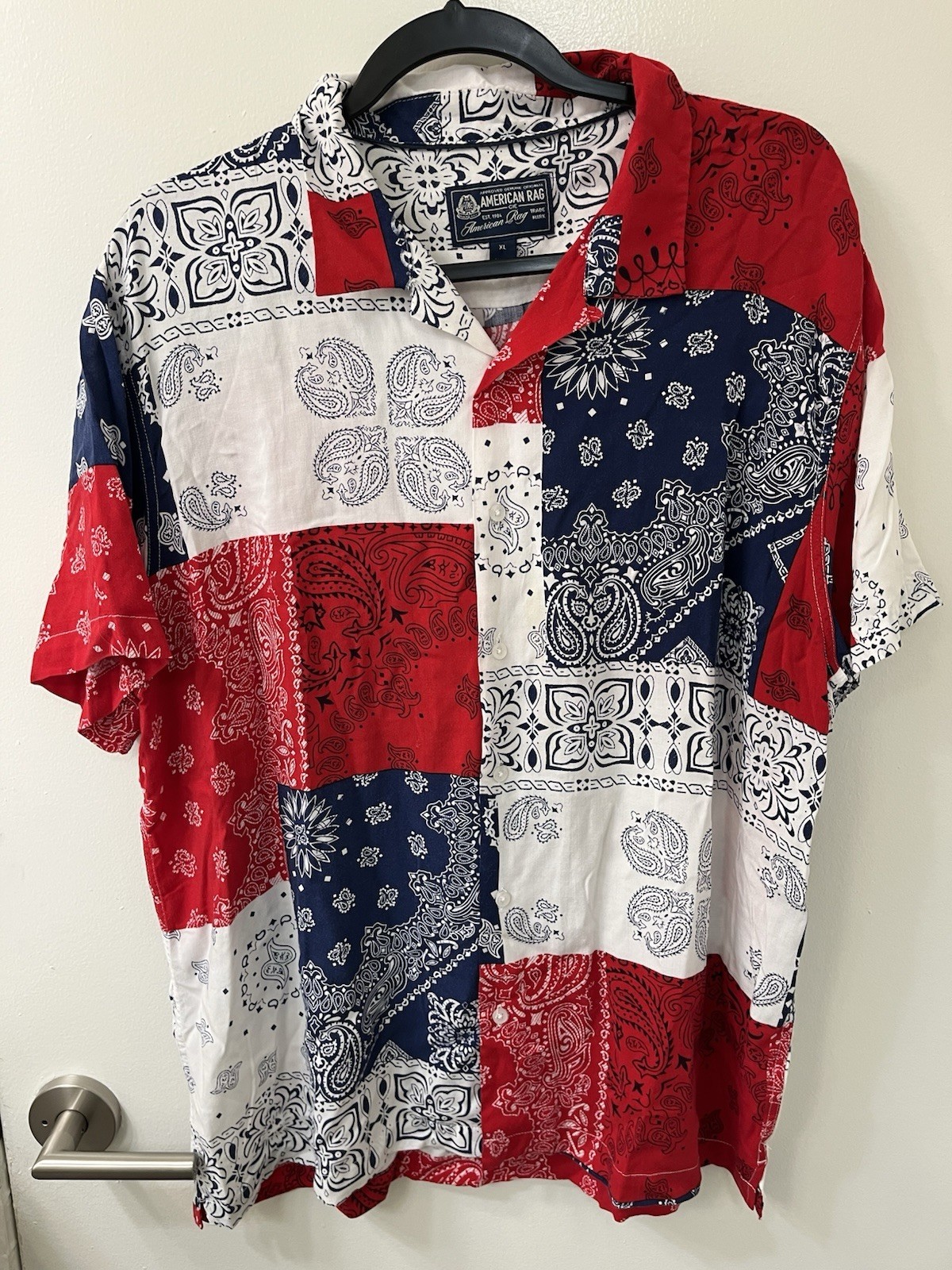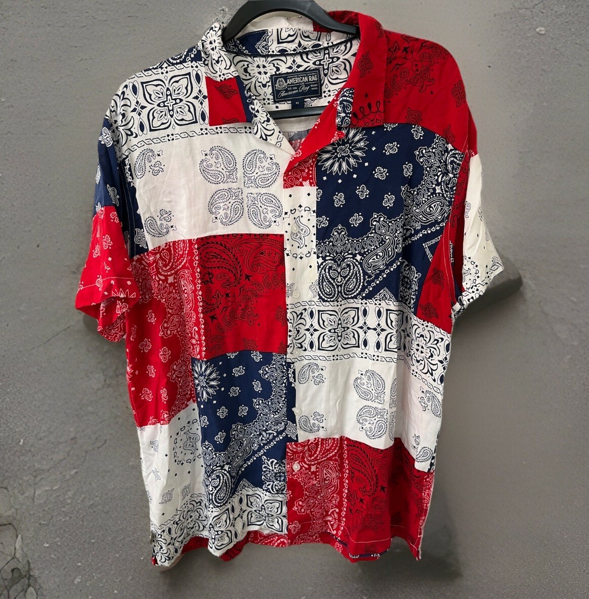 American Rag Bandana Button Down Short Sleeve Shirt Men's Size XL red blue white
