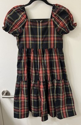 Crewcuts Squareneck Tiered Dress Tartan Girl 10 red Green black Plaid Holiday