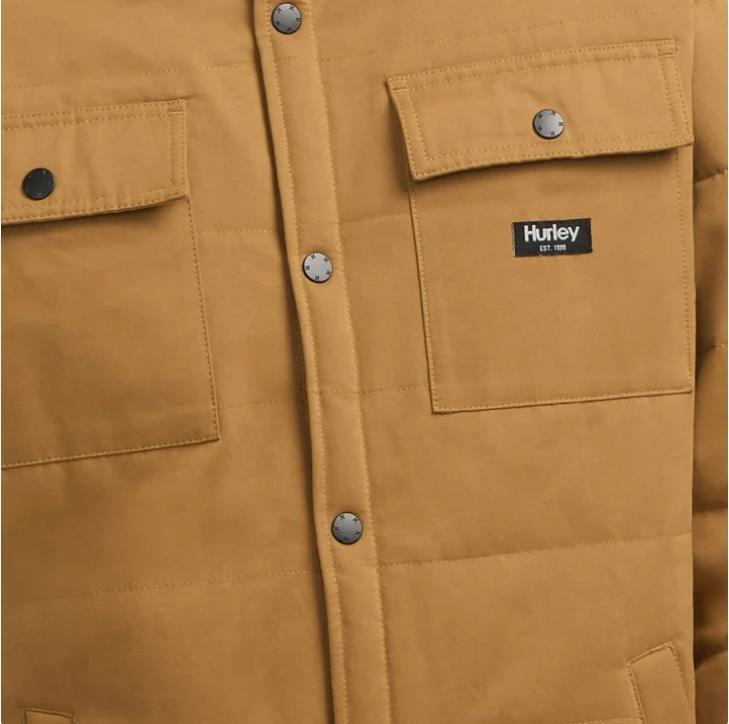 Hurley Mens Shirt Jacket Tan Shacket Pockets Quilted Snap Button Lightweight