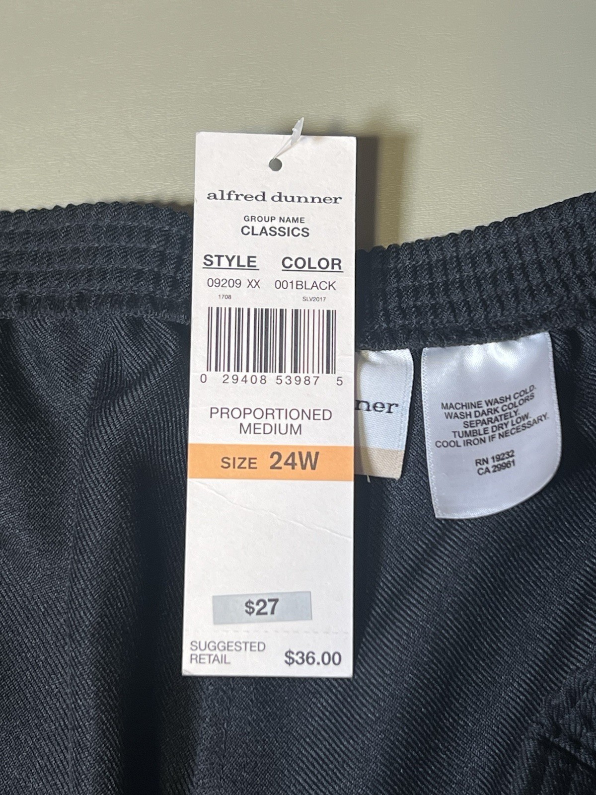 Alfred Dunner Classics Proportioned Medium Women’s 24W Black Pull On Slacks