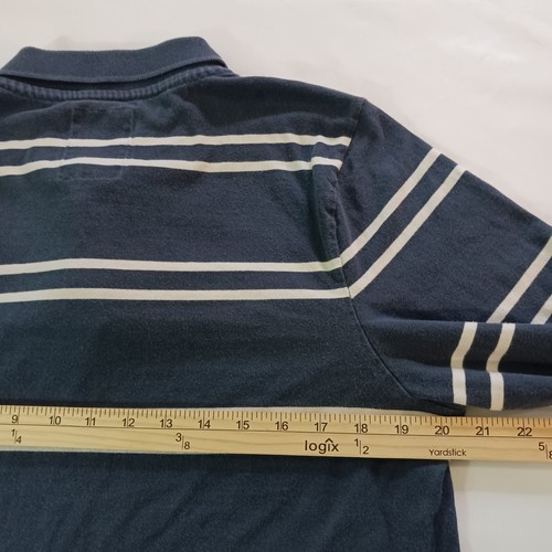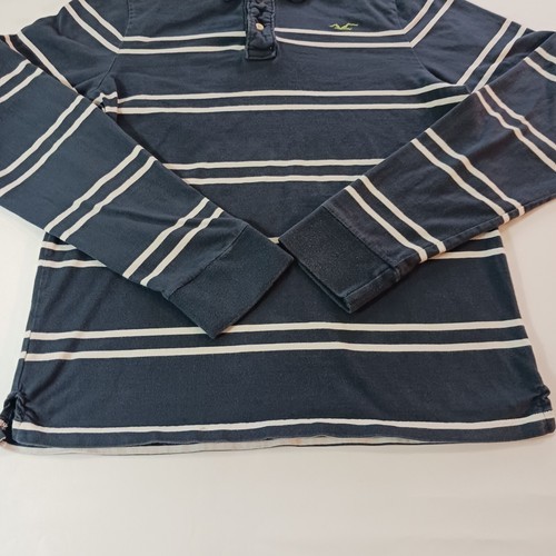 Vintage Hollister Men's Blue & White Striped Polo Shirt Long Sleeve Size XL
