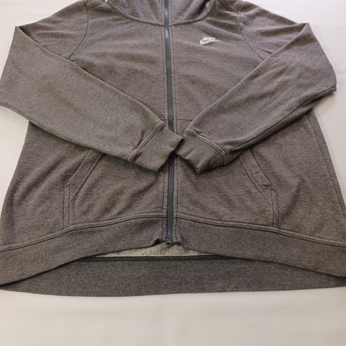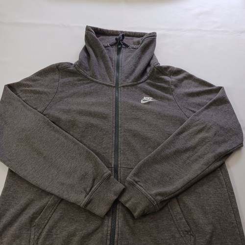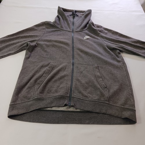 Nike Women's Gray Cotton Blend Cowl Neck Full Zip Jacket Pockets Size Medium