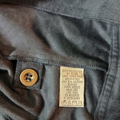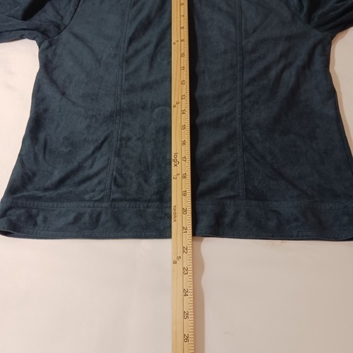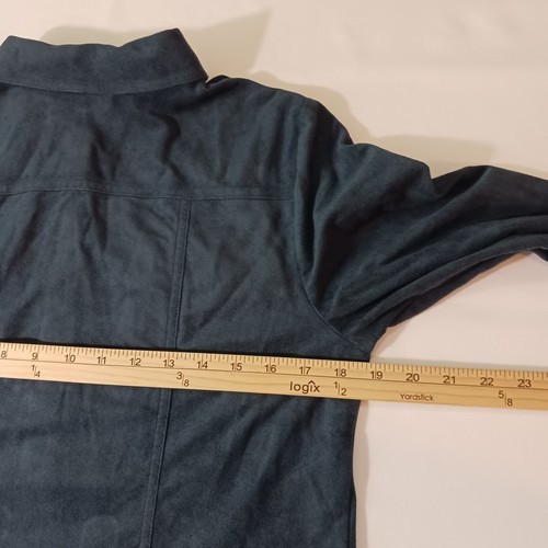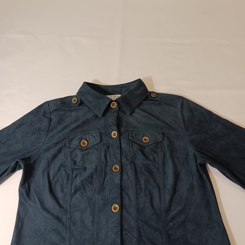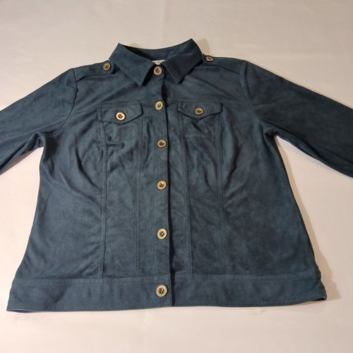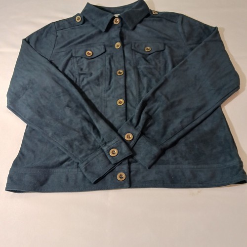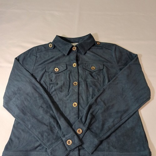 It is made of high-quality polyester and has a lining material that is comfortable to wear. The jacket has pockets, making it practical for everyday wear. It is a size small and has a length of 21 inches, with long sleeves and a button closure. This jacket is a must-have for any woman's wardrobe.