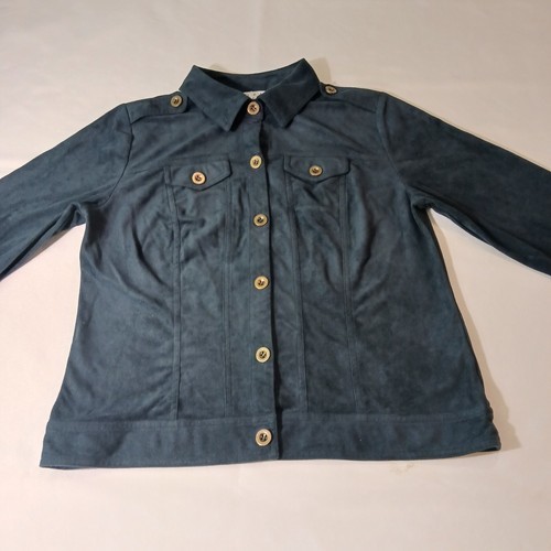 This stylish Joan Rivers jacket is perfect for any fashion-conscious woman. The gray color and solid pattern make it versatile and easy to pair with any outfit. The jacket has a button-front closure and a collar, giving it a classic look.