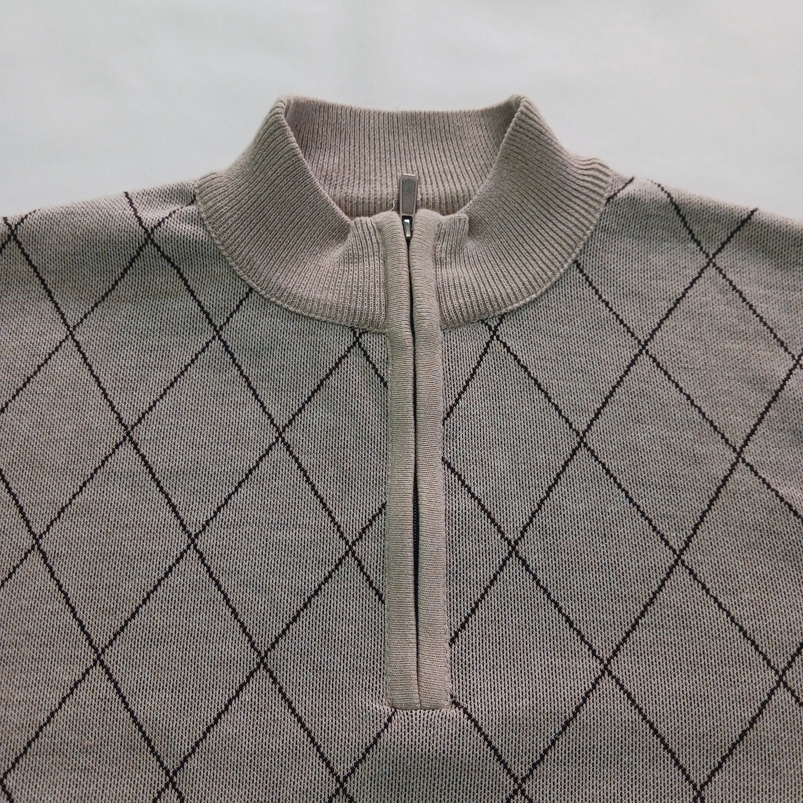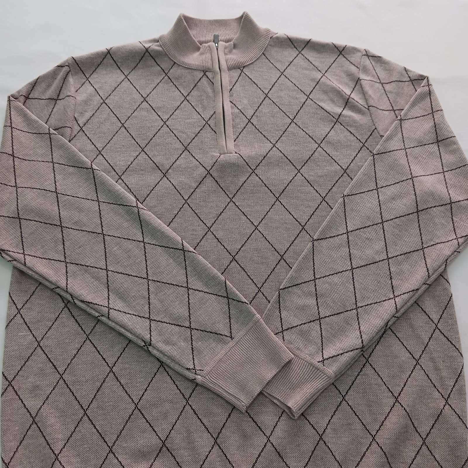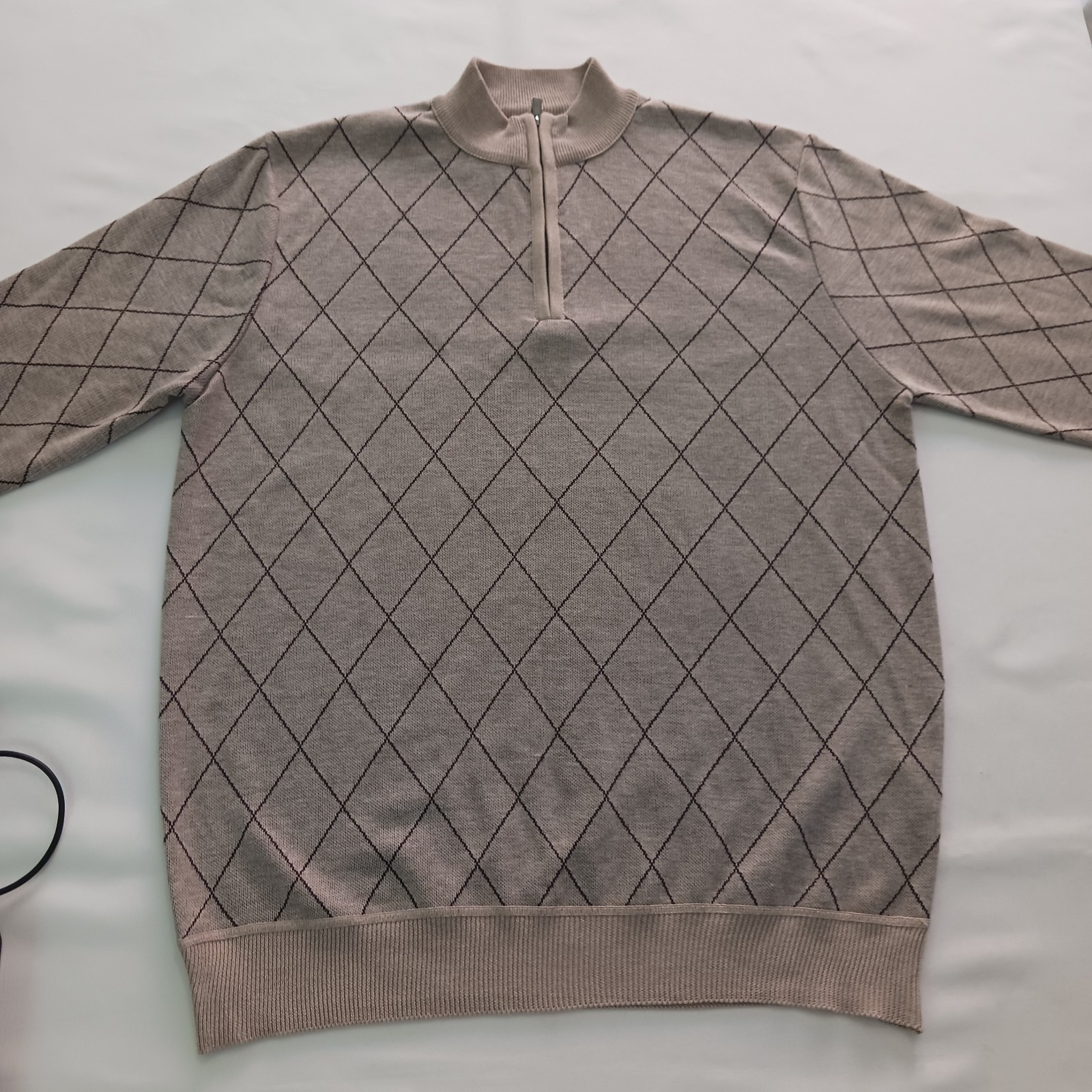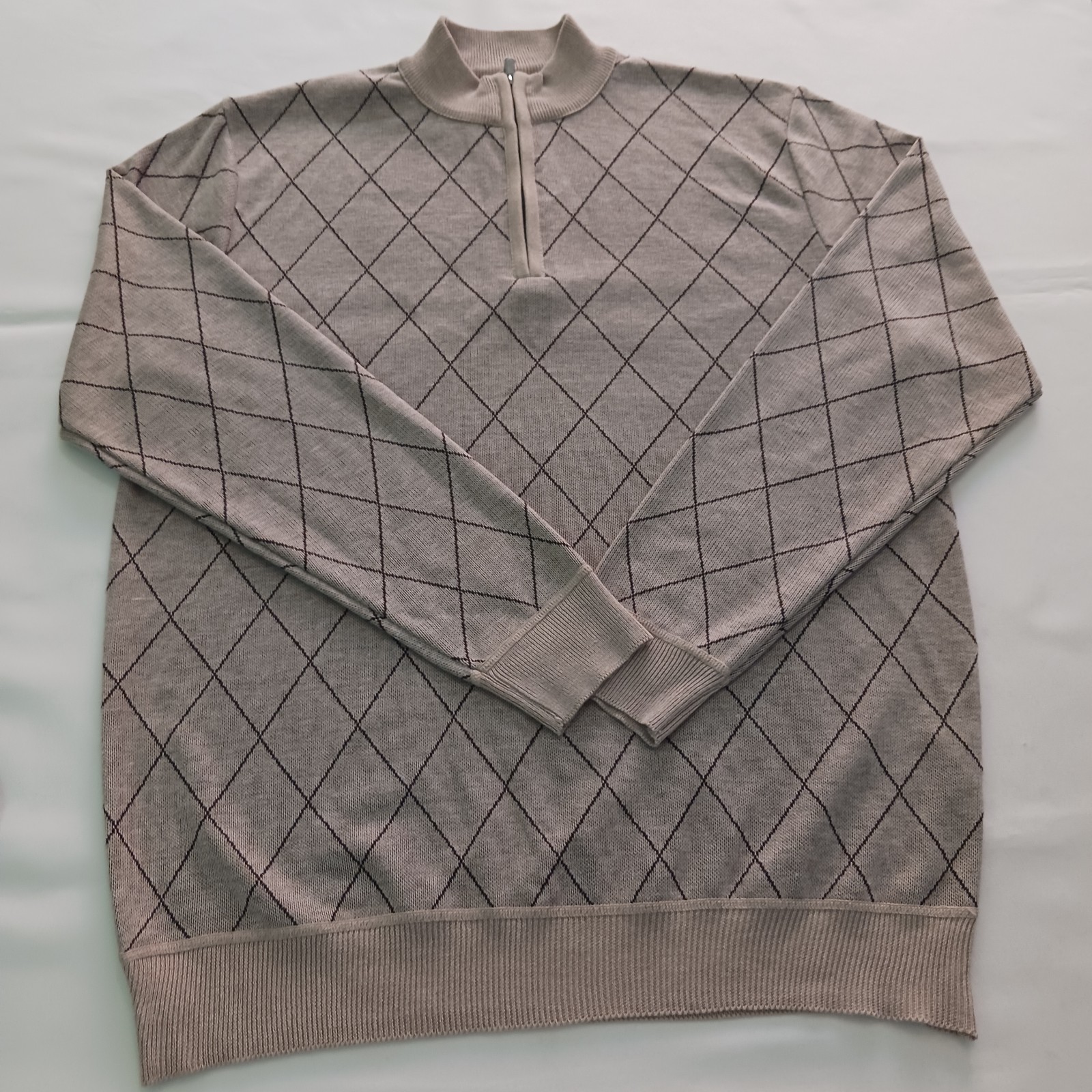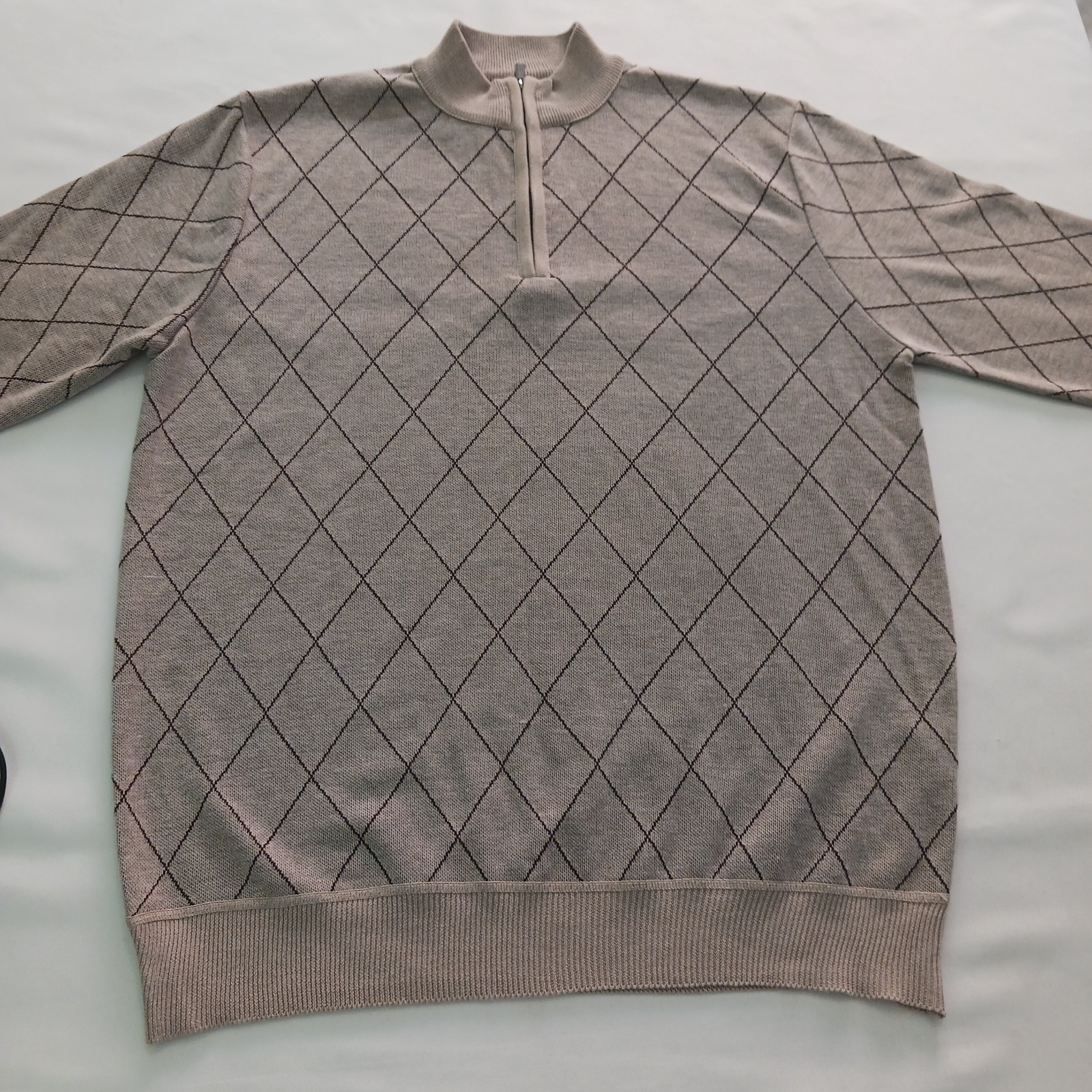 Manfinity Men's 1/4 Zip Brown Knit Long Sleeve Collared Pullover Shirt Size XL