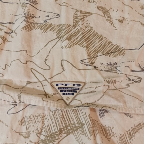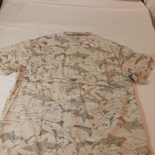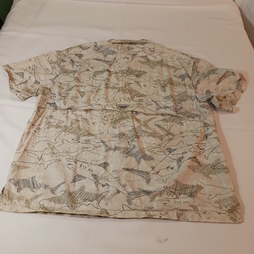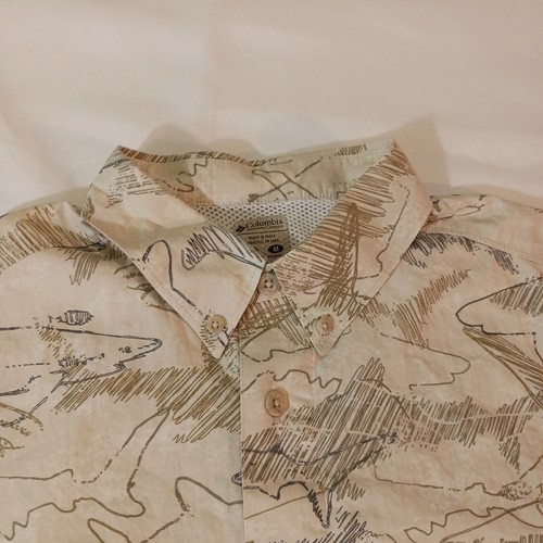 COLUMBIA Men's Tan/Beige Sailfish Button-Down Collar Short Sleeve Shirt Medium