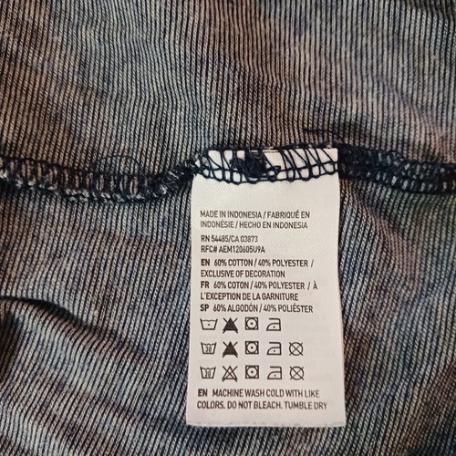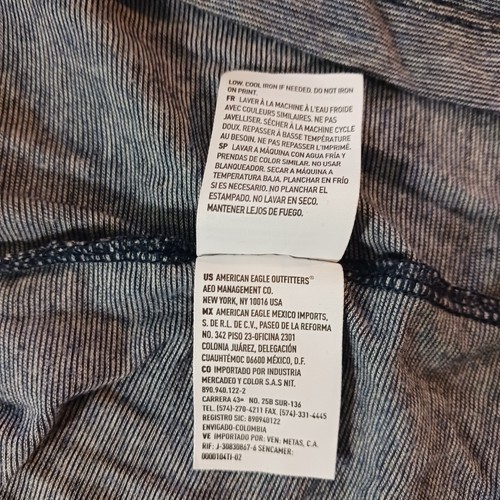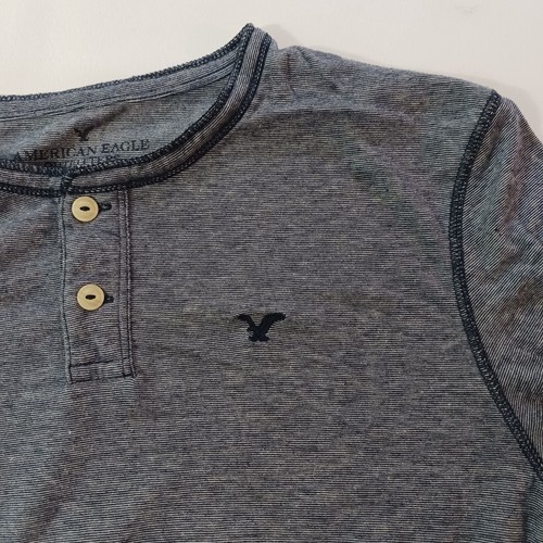 This American Eagle Outfitters women's T-shirt is perfect for any casual or travel occasion. The gray color and striped accents add a touch of style to the shirt. Made from a blend of polyester, cotton, wardrobe, and it is made in Indonesia.