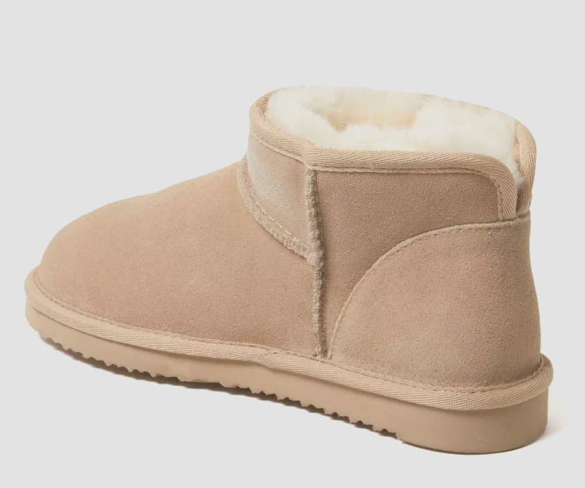 This is for a brand new with tags pair of Fireside by Dearfoams Women's Riverland Genuine Shearling Micro Bootie in Sand color, size 7 US Made with genuine suede and 100% Australian shearling Moisture wicking and temperature regulating all-natural fibers for all day wear Memory foam insoles for added comfort Durable, lightweight, indoor/outdoor EVA outsoles The Fireside by Dearfoams Women's Riverland Genuine Shearling Micro Bootie Sand in size 7 US is a stylish and cozy pair of boots for women. Featuring a round toe shape, suede upper material, and shearling fabric type, these boots offer both comfort and warmth. The Sand color and shearling style add a touch of luxury to this versatile and chic footwear option. Perfect for the colder seasons, these booties are sure to become a staple in a