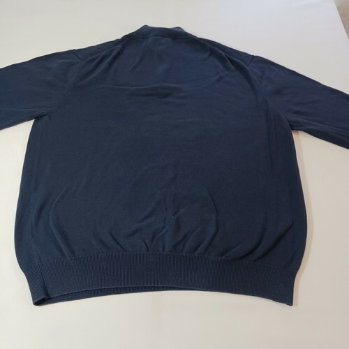 This Jos. A. Bank men's sweater is a solid blue pullover made of Pima cotton, featuring a 1/4 zip design and long sleeves. It is designed in size XL with a regular fit, suitable for travel and casual occasions. The sweater is a stylish and comfortable addition to any man's wardrobe, perfect for layering during cooler weather.