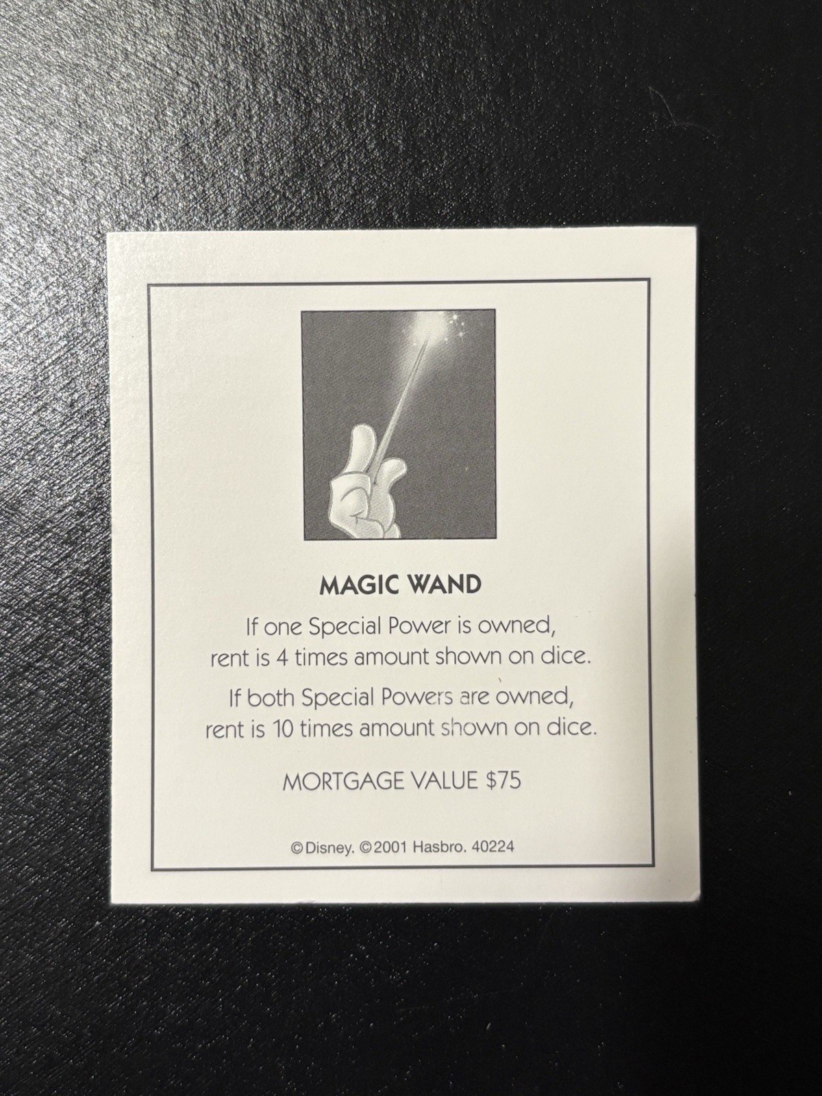 Disney Edition Monopoly Replacement Piece: Title Deed Card -Magic Wand