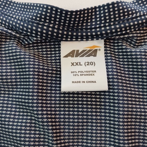 This Avia women's top is perfect for any occasion, from casual wear to work attire. The round neckline and cap sleeves give it a classic and sporty look. Made from a comfortable and durable microfiber fabric consisting of polyester and spandex, this shirt is machine washable for easy care. The blue and white design is accented with the Avia logo, adding a touch of style to the shirt. This top comes in a size 2GX (20) and is a plus size fit, making it perfect for any woman.