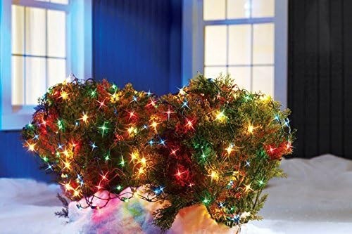 This multicolored net light set is used by homeowners and seasonal decorators looking to quickly illuminate dense outdoor areas like hedges, bushes, or small trees without the frustration of wrapping traditional strings. The grid layout ensures even spacing and full coverage, making it especially effective for front-yard displays in suburban neighborhoods or commercial properties seeking low-effort, high-impact holiday curb appeal. The warm incandescent glow and classic color mix evoke nostalgic charm, appealing to those who value tradition and simplicity in their decorations. Ideal for users prioritizing speed, reliability, and a cohesive festive look with minimal maintenance.