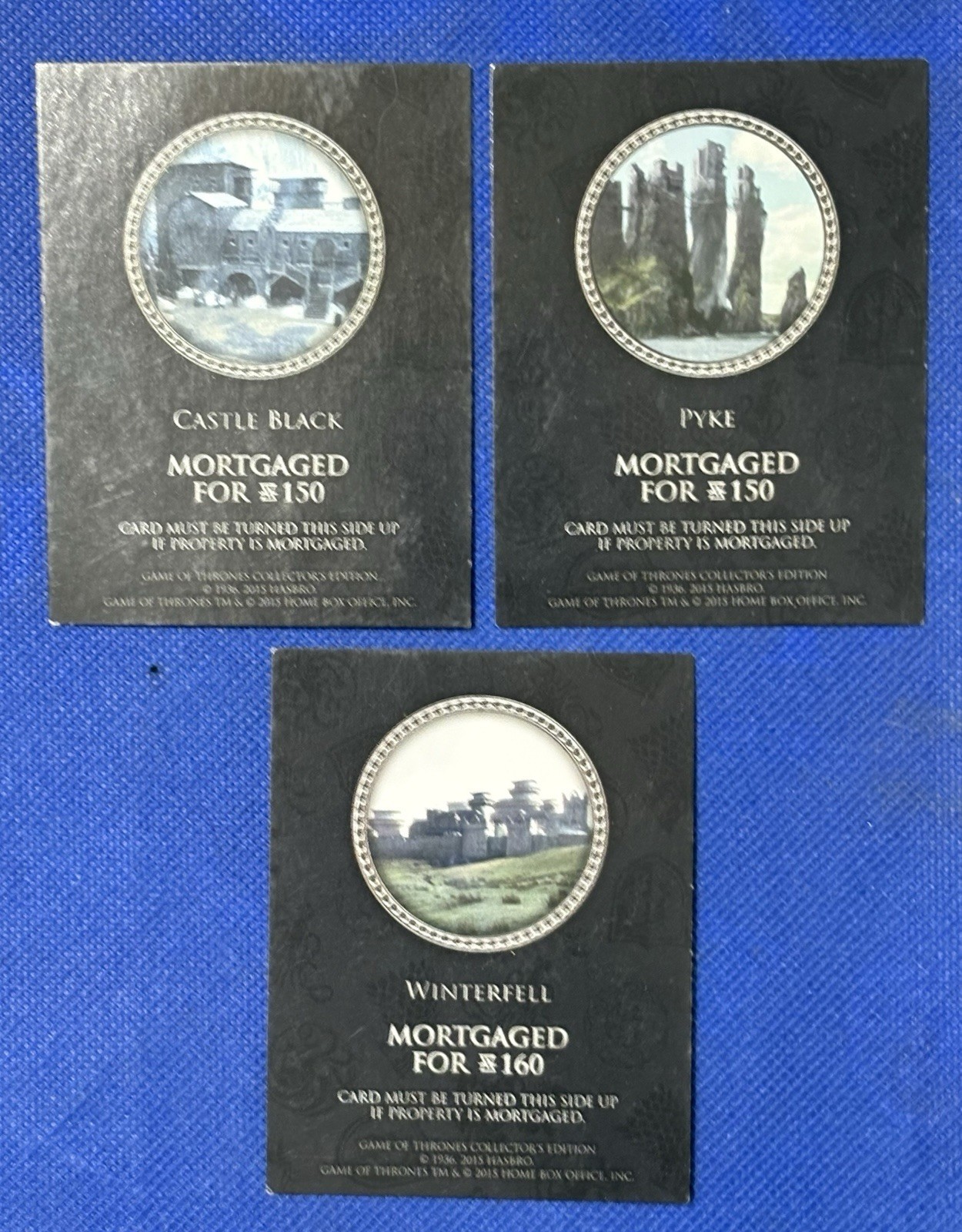 GAME OF THRONES MONOPOLY 2018 Replacement Pieces: 3 Property Mortgage Deeds
