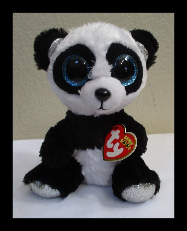 Ty Beanie Boos Tysilk Bamboo The Panda Bear Big Blue Glitter Eyes NEW