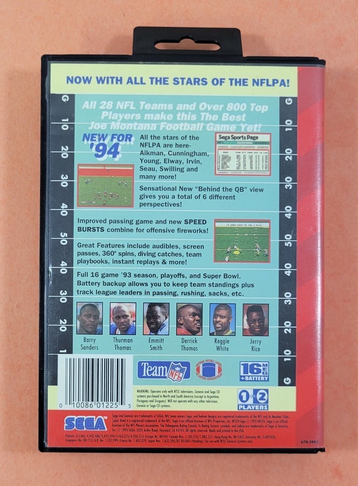 O) NFL Football '94 Starring Joe Montana (Sega Genesis, 1993) Video Game