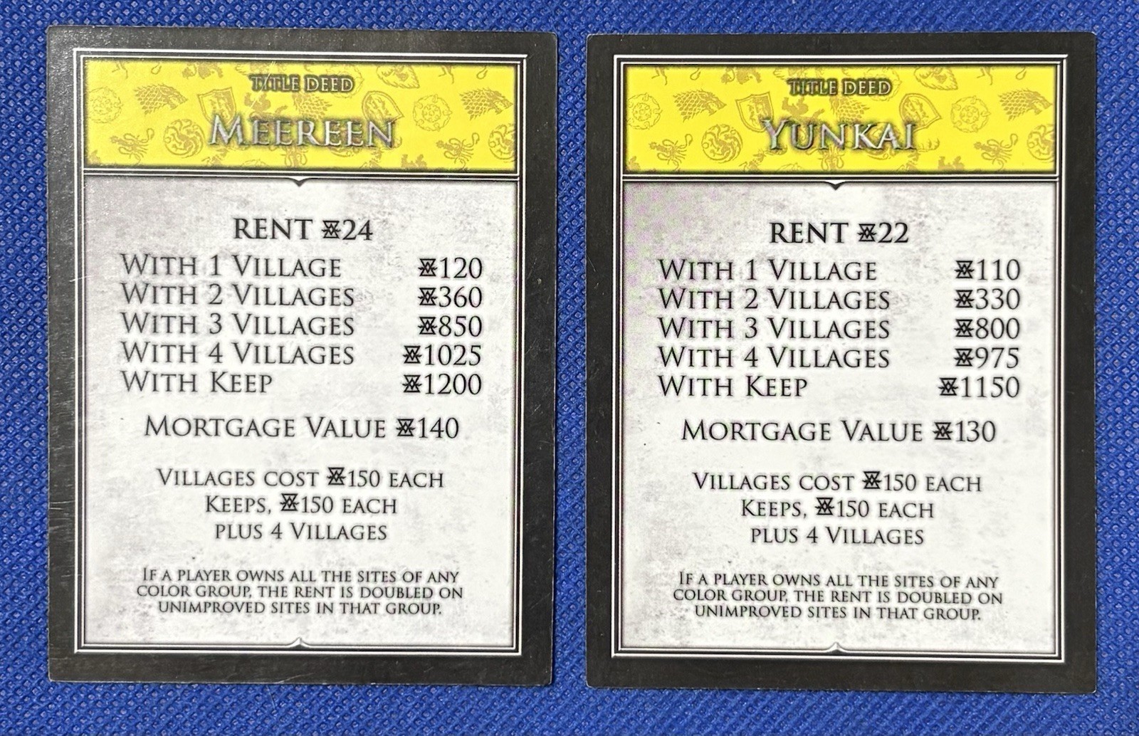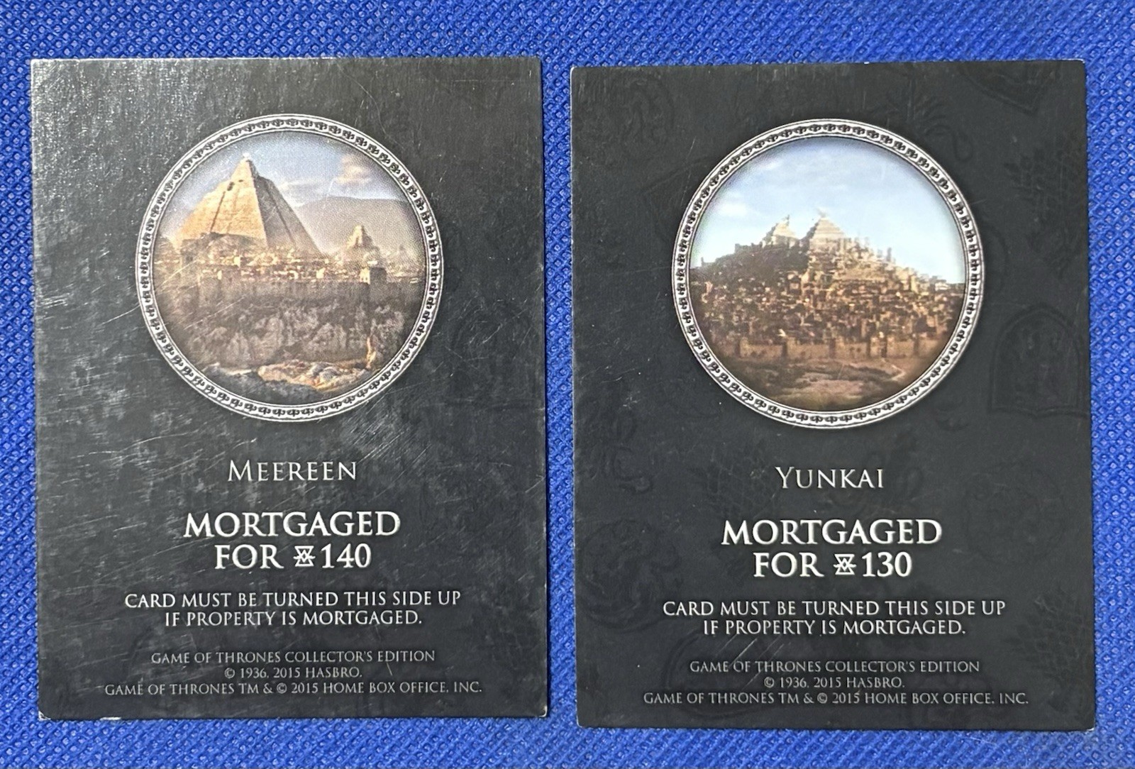 GAME OF THRONES MONOPOLY 2018 Replacement Pieces: 2 Property Mortgage Deeds