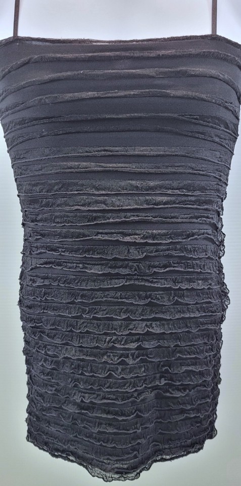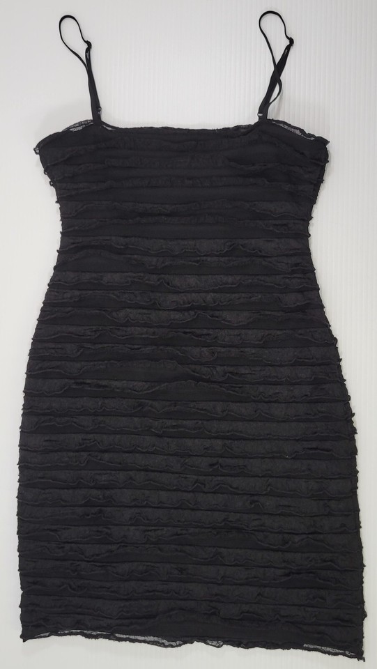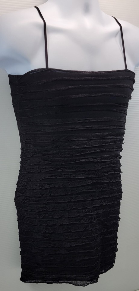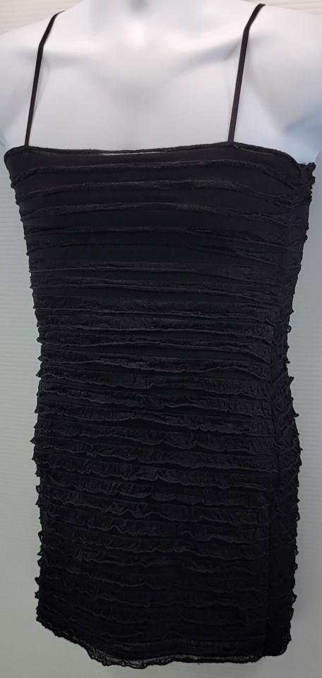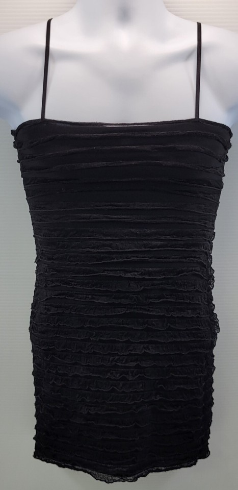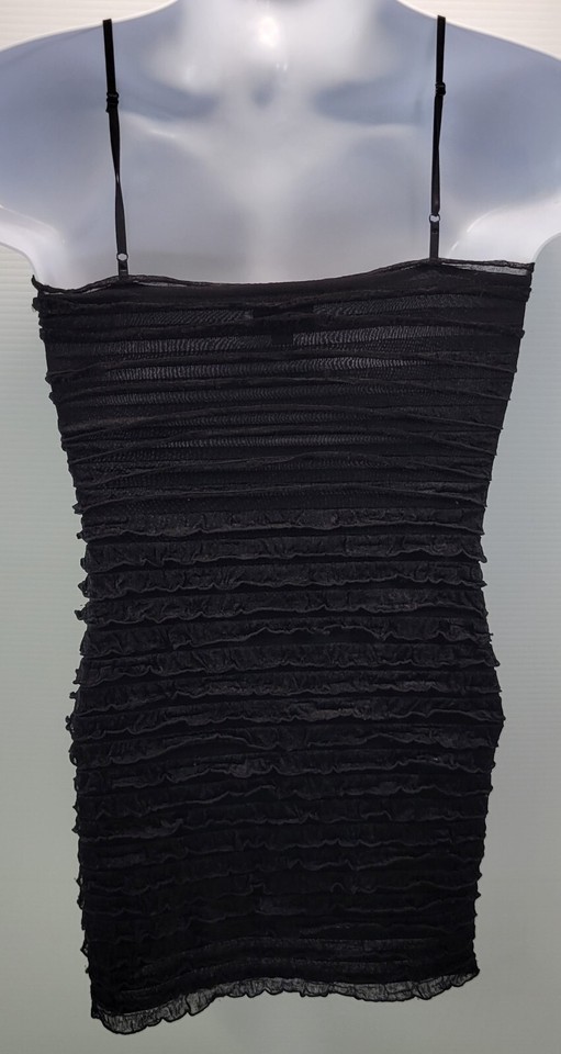 A) Guess Spaghetti Strap Sleeveless Tank Top Black Ruffled Dress Size Small