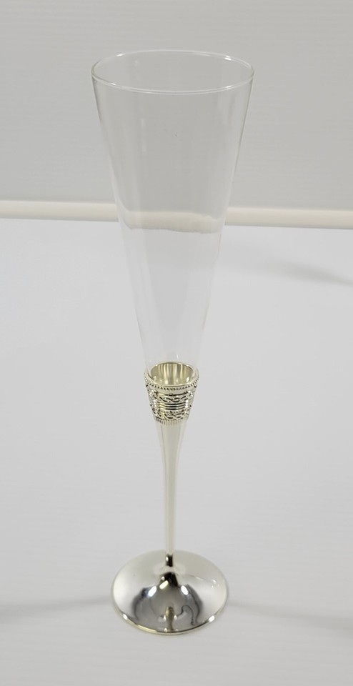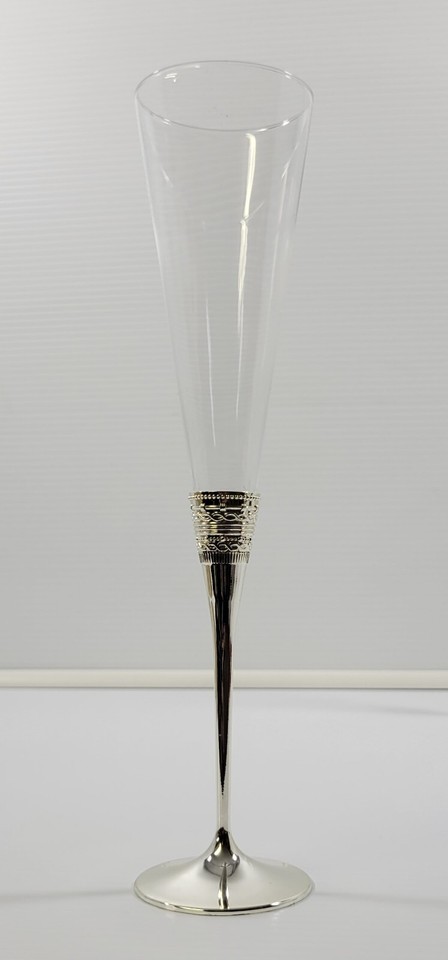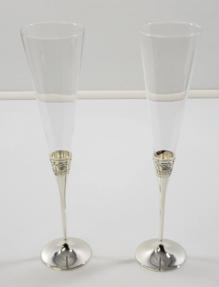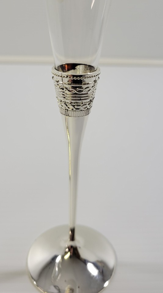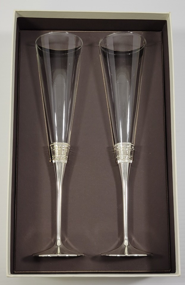 K) Vera Wang Wedgwood With Love Silver Plate Toasting Flute Glasses Pair