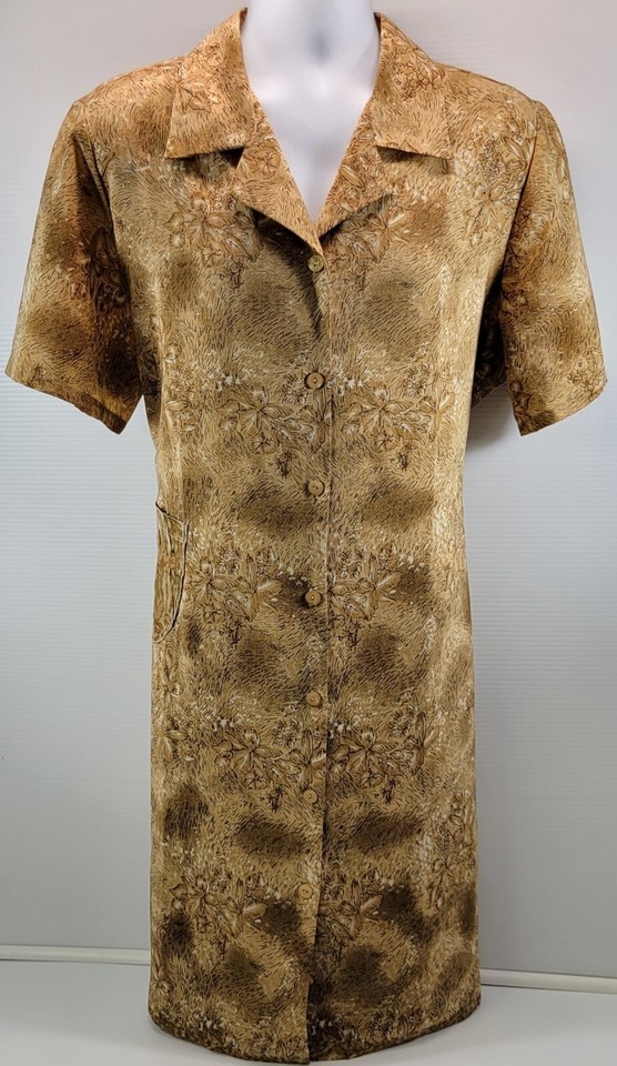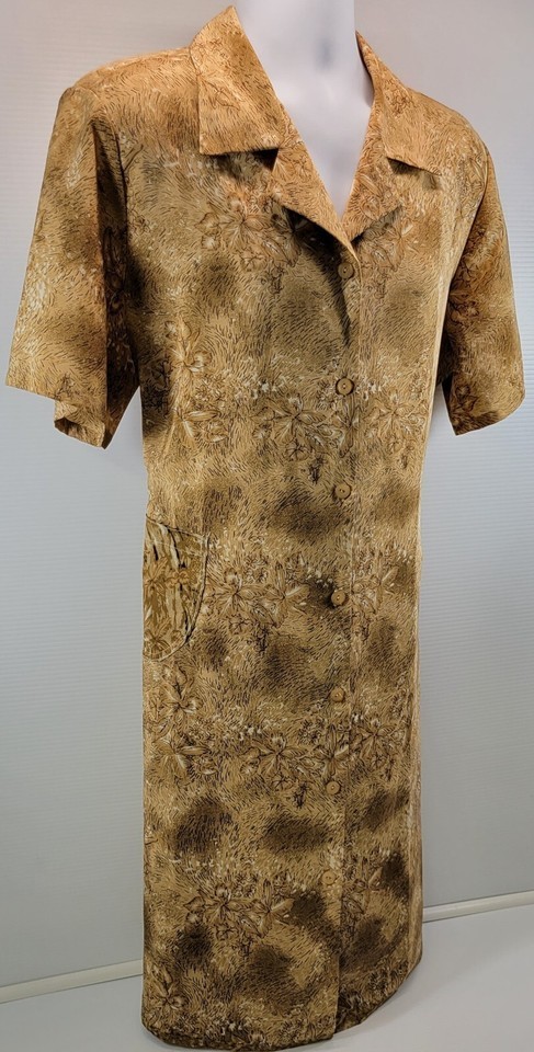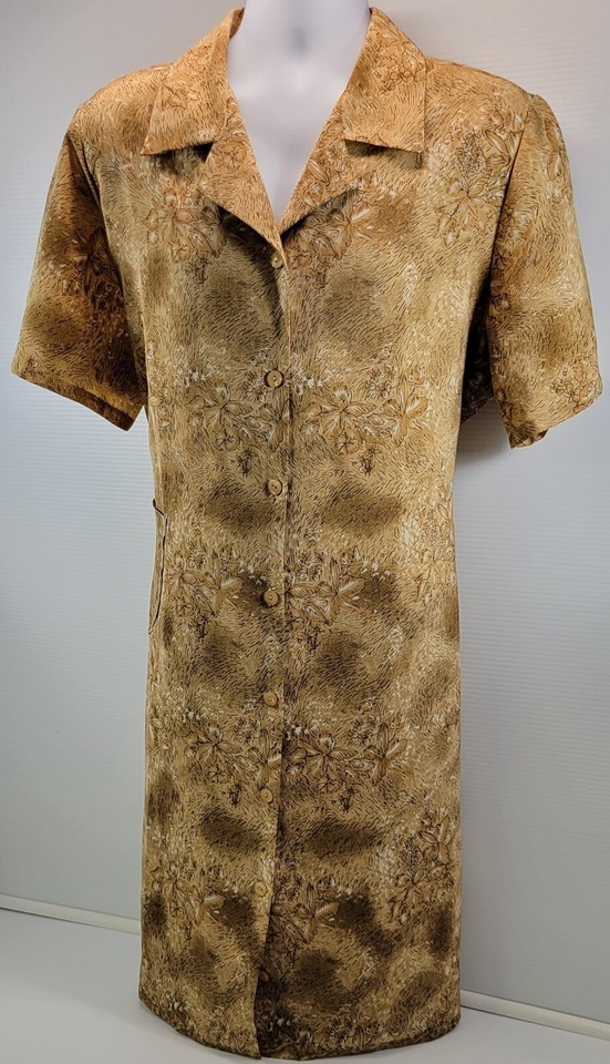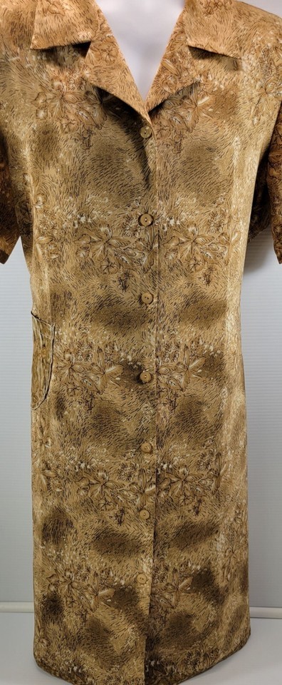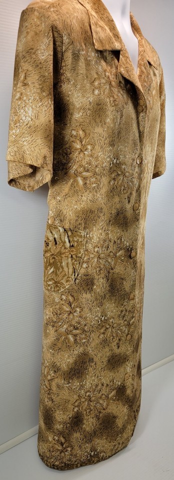 Voir Collection Brown Floral Women Polyester Button Down Rear Tie Maxi Dress XL