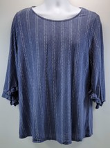 L) W5 by Anthropologie Woman Blue Ribbed Pullover Shirt Top 1X
