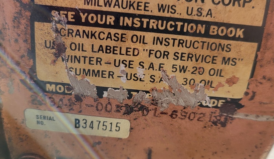 Motor has not run in many years and been in garage storage. It turns and is not seized, but may require some work, repair and additional parts to get it working. It is old garage inventory that has sat for well over 20 years.