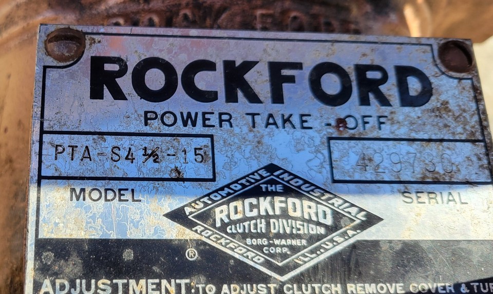 Includes Rockford power take-off clutch (model PTA S4 1/2-15)