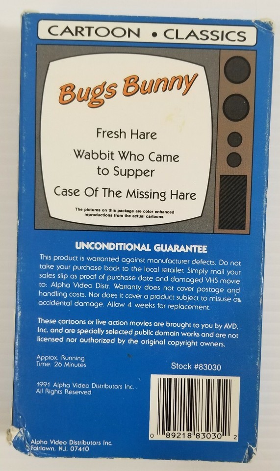 M) Bugs Bunny - Cartoon Classics (1991, VHS Cassette Tape) Alpha Video