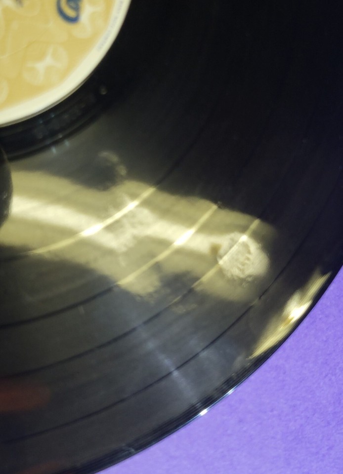 Record - POOR(P)/GOOD(G) - there is a section on side 1 of the record that has some warping which may cause soem skipping on certain record players