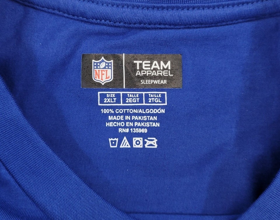 N) New York Football Giants NFL Apparel Sleepwear Big and Tall T-Shirt 2XLT