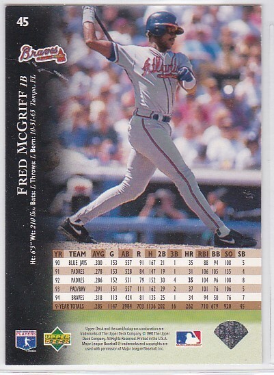N) 1995 Upper Deck Baseball Trading Card - Fred McGriff #45