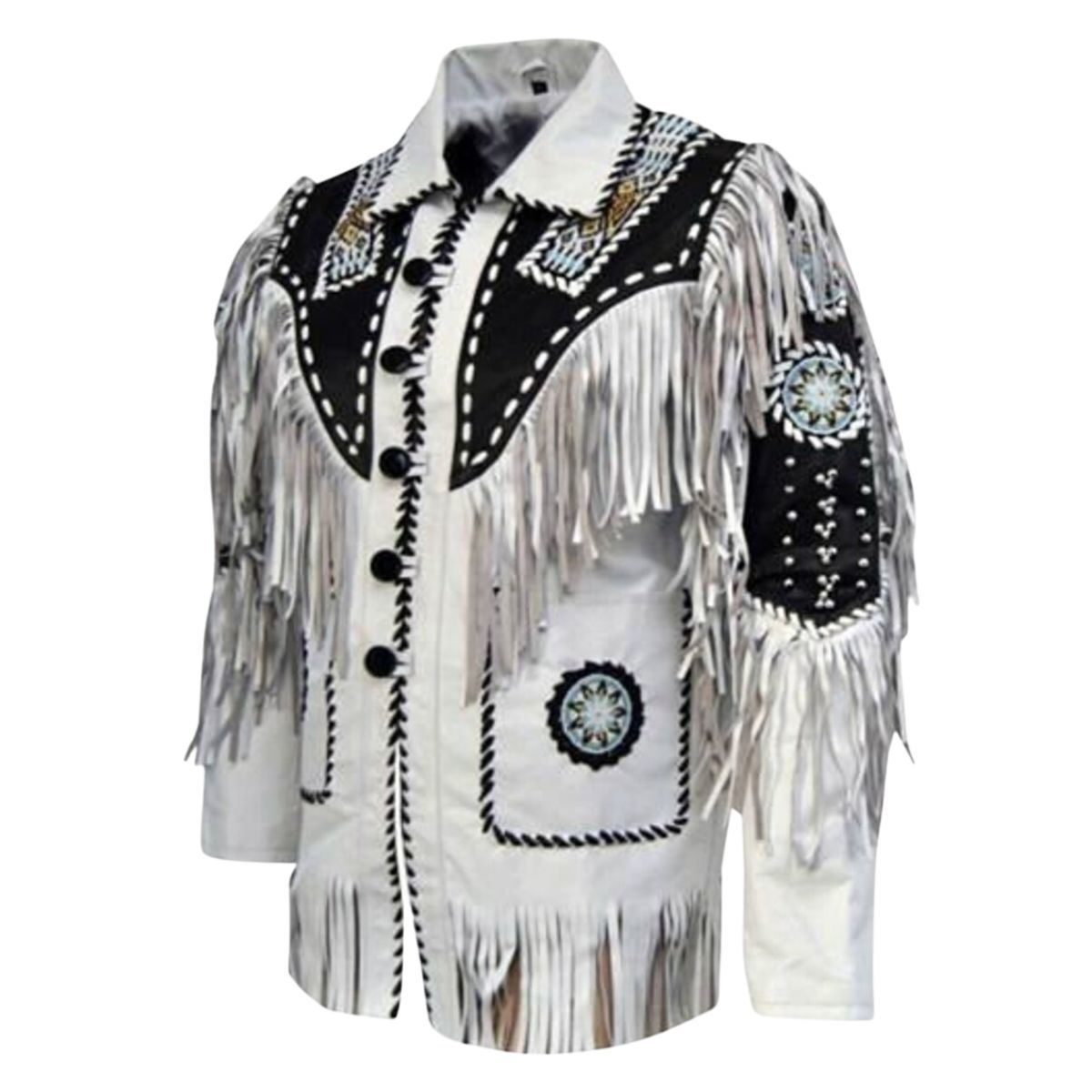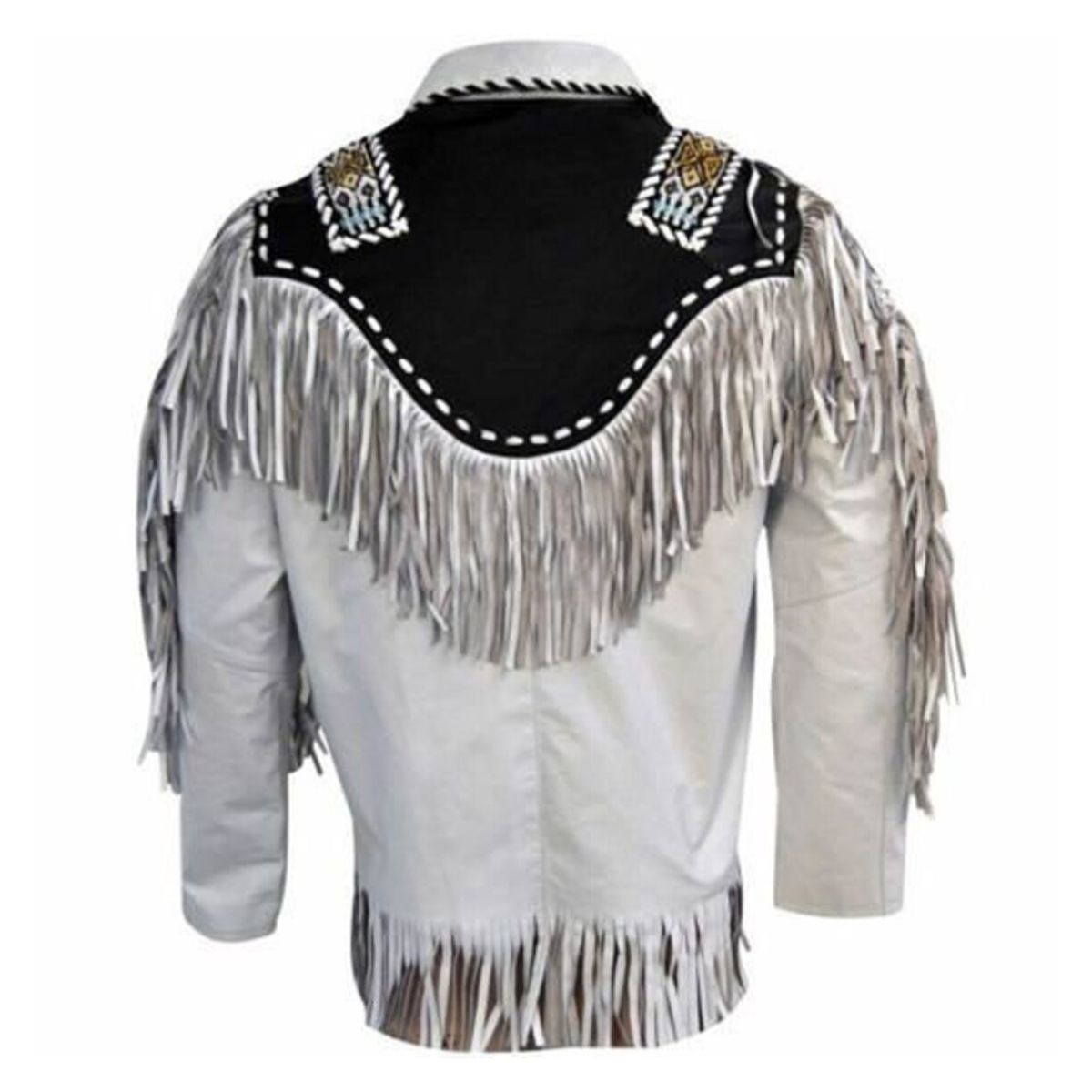 Men White Western Style Fringes Leather Jacket