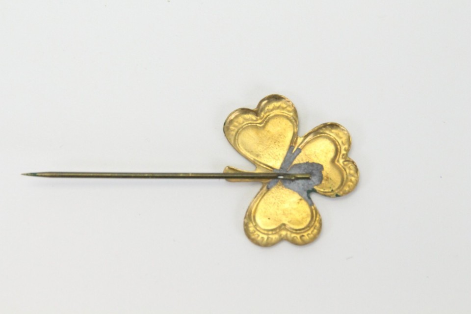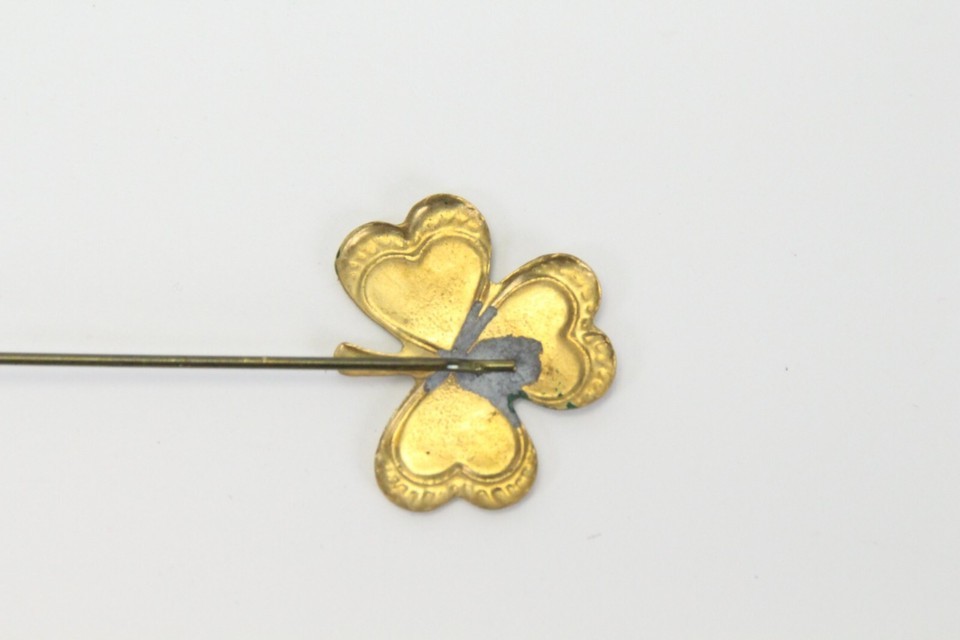 Lucky 3 Leaf Clover Antique Pin Stick 1900s Green Gold Unique Rare