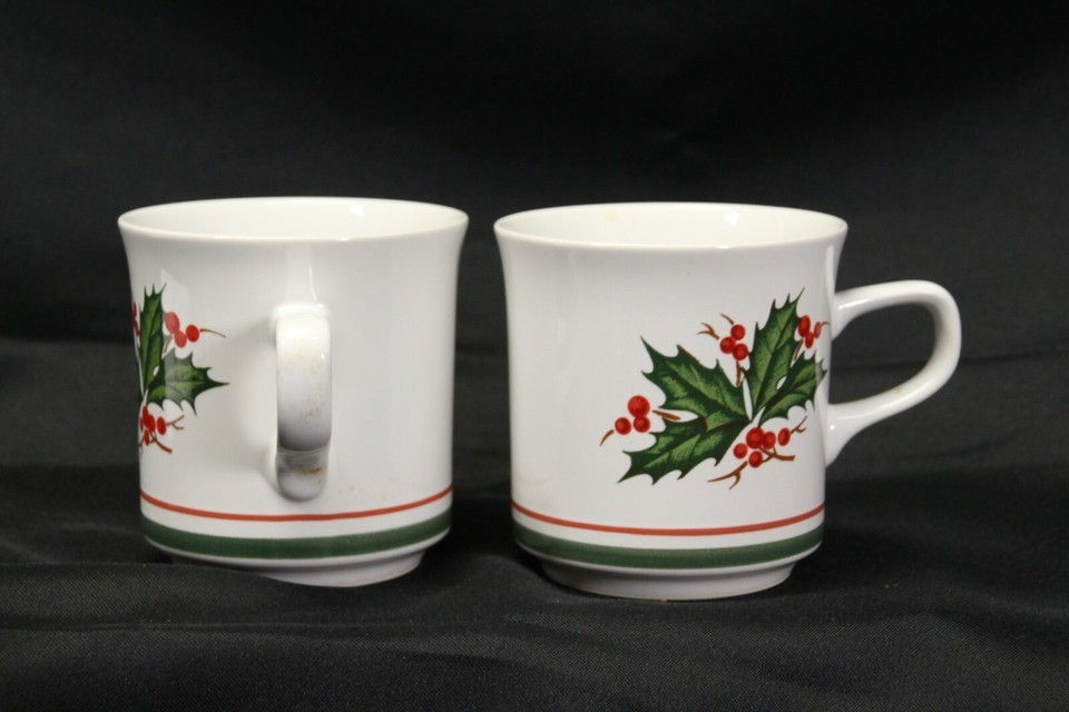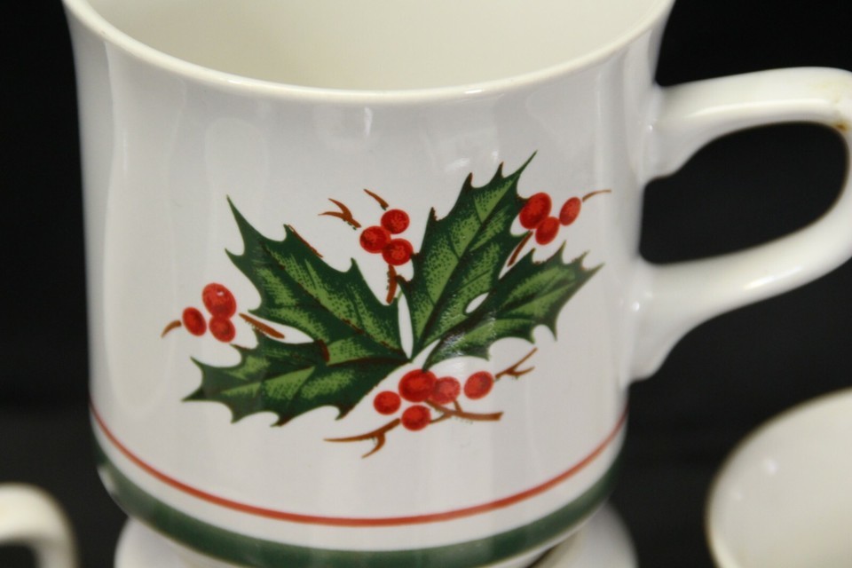Anchor Hocking Holiday Charm Holly Wreath Cups Christmas Lot of 7 Xmas