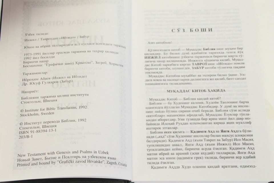 Tajik Uzbek Language Gospel Инҷил Reading Torah New Testament Psalm Genesis