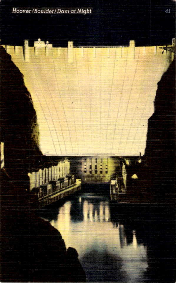 Postcard Boulder Dam NV-Nevada View At Night 1941 Linen Unposted