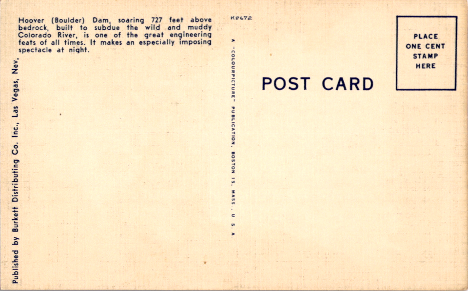 Postcard Boulder Dam NV-Nevada View At Night and 29 similar items