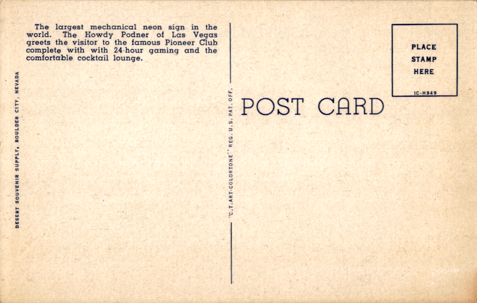 Postcard Pioneer Club Las Vegas NV Neon Sign and 29 similar items