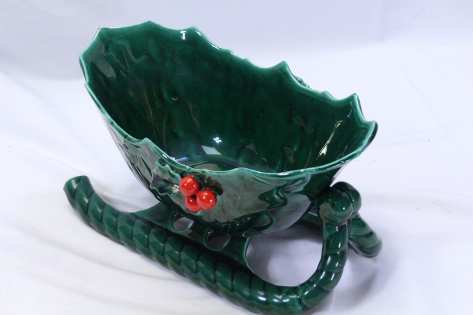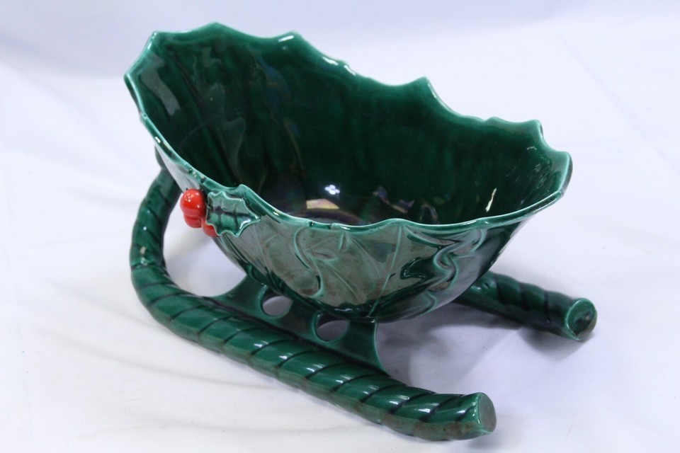 Lefton Holly Berry Sleigh Candy Dish Large 10.5"