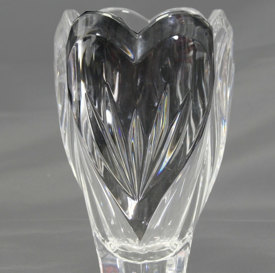 Lovely MARQUIS by WATERFORD LEAD CRYSTAL VASE with a SCALLOPED TOP and HEARTS
