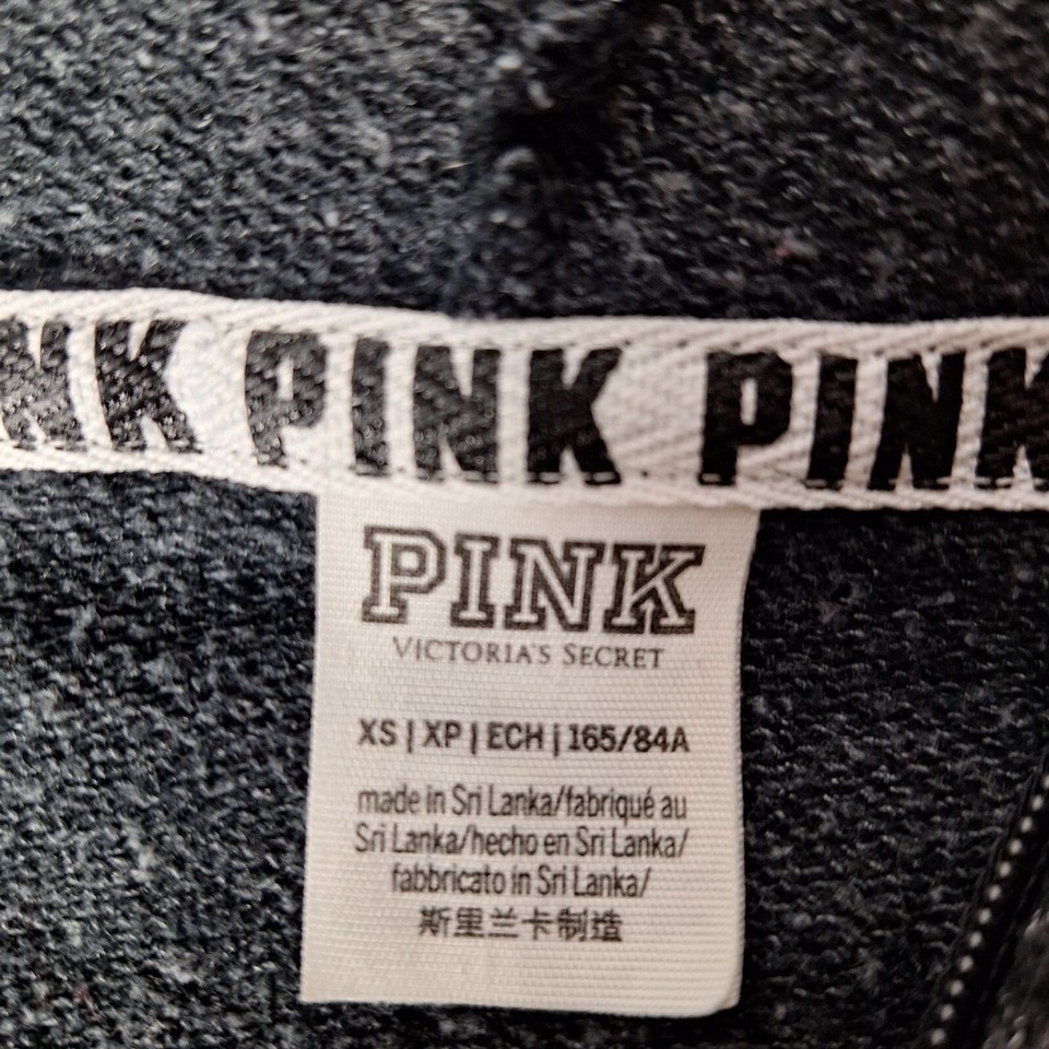 Pink Victoria Secret Women's Hoodie Size XS Black Spell Out Distressed