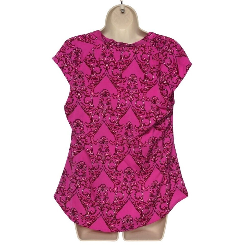 Worthington Women's Blouse Top Size Medium Geometric Pink Short Sleeve Casual