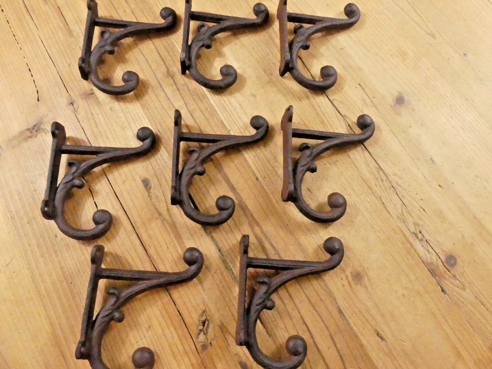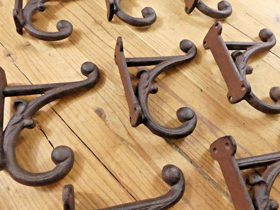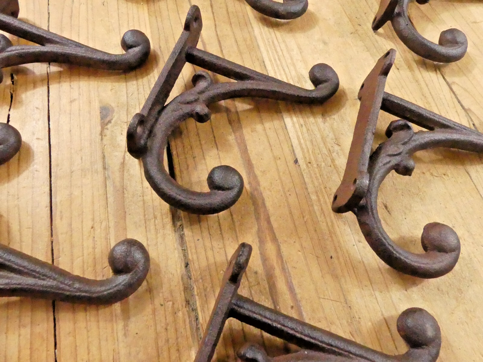 8 BROWN DOUBLE CAST IRON HOOKS! SALE INCLUDES 8 HOOKS!