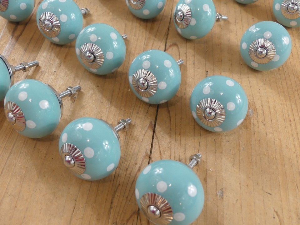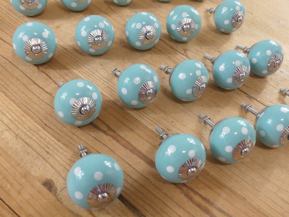 SET OF 20 LIGHT TURQUISE BLUE COLOR WITH POLKA DOTS KNOBS! SALE INCLUDES 20 KNOBS!