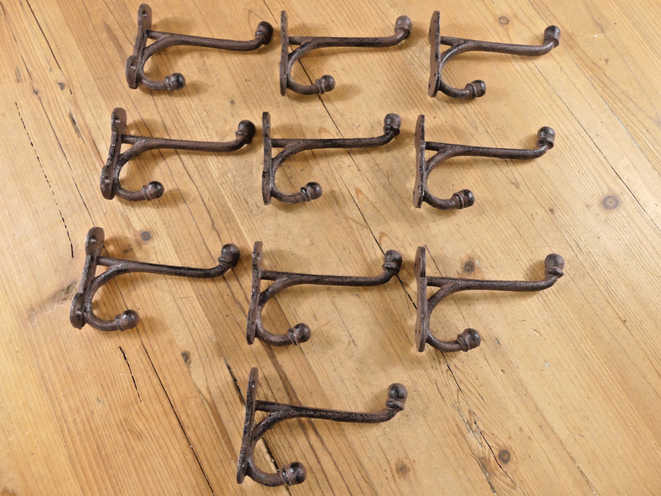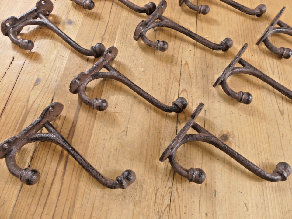 SET OF 10 RUSTIC CAST IRON LONG HOOKS! SALE INCLUDES 10 HOOKS!
