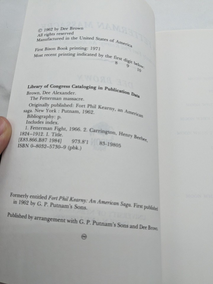 *Small Dry Liquid Damage* The Fetterman Massacre Dec Brown Book