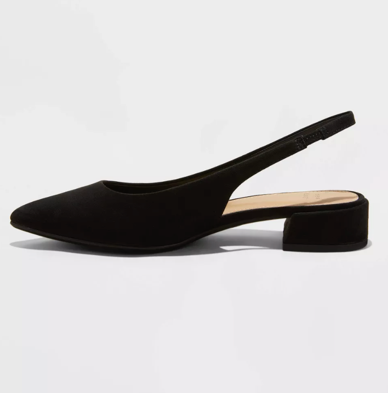 These Elle Slingback Pointed-Toe Heels from A New Day make a comfy and stylish addition to your footwear closet. Made from microsuede fabric with polyurethane lining, these heels are designed with a pointed toe and slip-on style. Set on 1.25-inch block heels, they also feature cushioned insoles for comfortable walking.