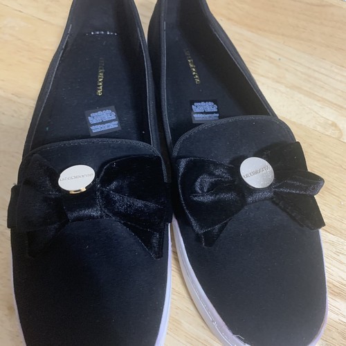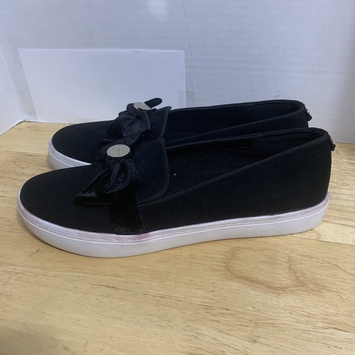Elevate your shoe game with these stylish Liz Claiborne black vegan suede platform sneakers. These chunky flats boast a Y2K vibe with a bow accent, making them perfect for any fashion-forward woman. The faux suede material is accented with a vegan touch, making these shoes both stylish and eco-friendly.