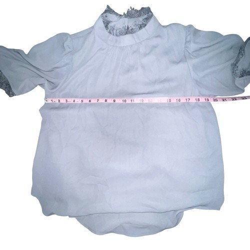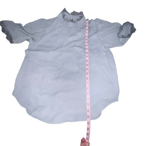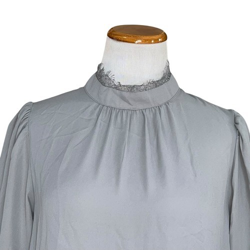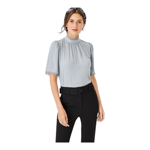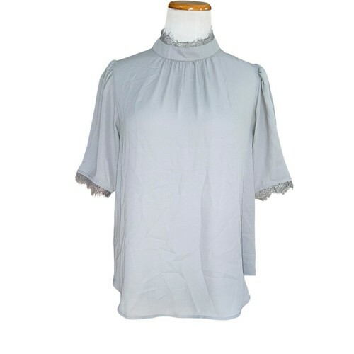 Add a touch of sophistication to your wardrobe with this Ann Taylor blouse. The draped sleeve and mock neck design give it a classic and timeless look, while the pleated and lace accents add a touch of elegance. The lightweight and all-season features make it perfect for any occasion, whether it's a casual day out or a business meeting. This blouse comes in a beautiful gray color and is made of high-quality polyester material, ensuring both comfort and durability. The pullover closure and short sleeves make it easy to wear and perfect for any size.