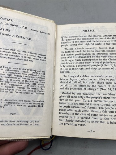 1965 Parish Mass Book & Hymnal St Joseph Ed. Catholic Prayer Book Leather