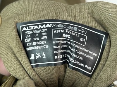 Up for sell is a Altama 322003 Men's Raptor 8" Safety Toe Coyote Military Tactical Boots Shoes. Size 13W Shoes with a steel safety toe.